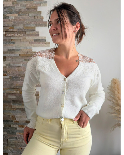 Nouveau Supprimer du panier Liste de souhaits APERCU Panier ARNOLD | Gilet blanc détail... Pulls & Gilets Prix 39,90 € Taille Unique La simplicité d'une maille blanche accompagnée de dentelle Le Gilet Arnold est le mélange parfait de confort et de raffinement pour vos...