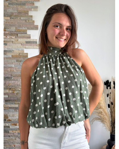 Nouveau Supprimer du panier Liste de souhaits APERCU Panier YAN | Top kaki à pois Tops & Blouses Prix 26,90 € SM ML Le top chic qui sublime les épaules Ce top vert olive à pois blancs séduit par son col halter et sa coupe fluide ultra flatteuse. Une pièce...