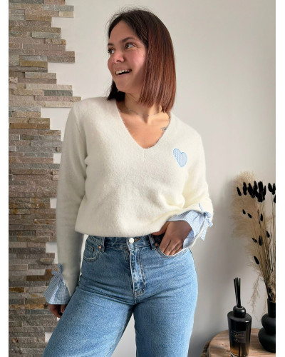 Nouveau Supprimer du panier Liste de souhaits APERCU Panier JASON | Pull coeur vichy bleu Pulls & Gilets Prix 38,90 € Taille Unique Le pull Jason : la douceur du blanc alliée au charme délicat du vichy Succombez au style romantique du pull blanc col V, une pièce lumineuse...