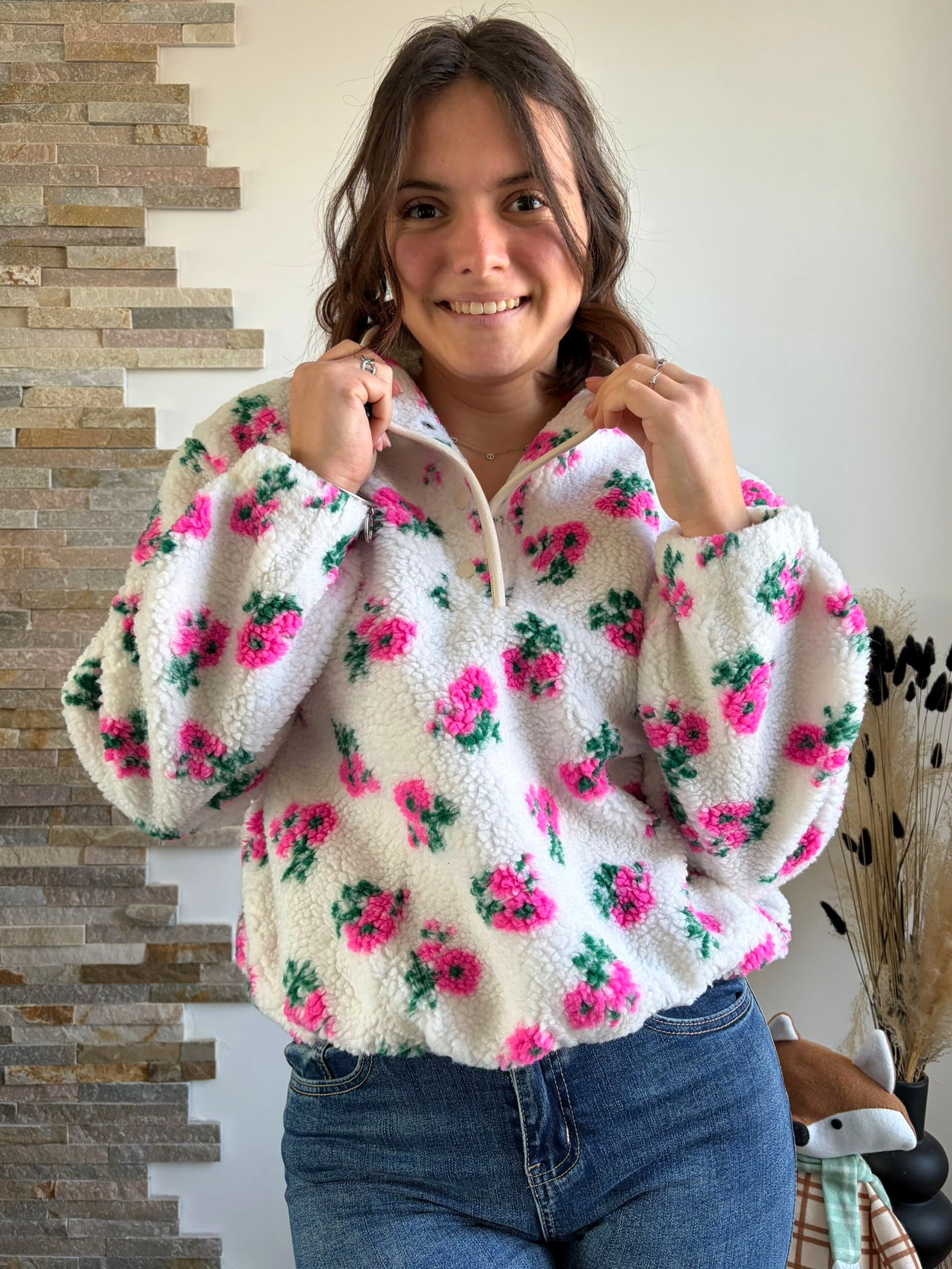 Nouveau Supprimer du panier Liste de souhaits APERCU Panier EMMA | Veste sherpa écrue... Coup de coeur Prix 49,90 € SM ML Un veste réversible ultra doudou pour réchauffer votre saison avec style Craquez pour cette veste écrue fleurie réversible en rose, une pièce...