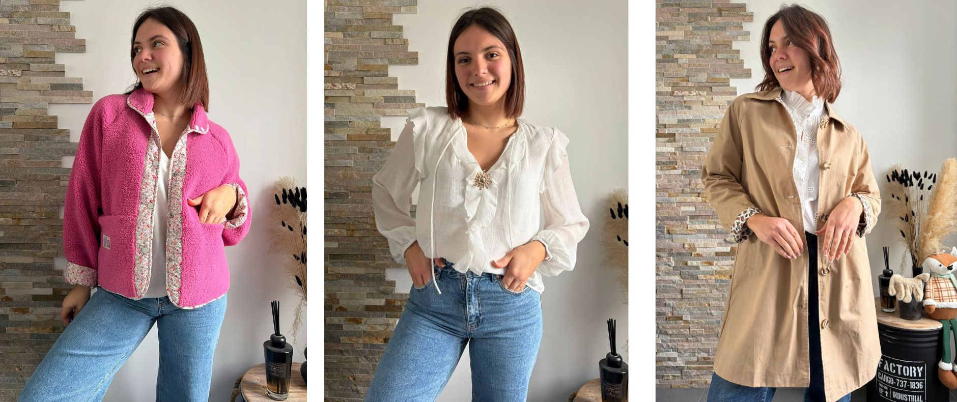 Supprimer du panier Liste de souhaits APERCU Panier INDILA | Veste sherpa... Vestes & Manteaux Prix 46,90 € SM ML Un veste réversible ultra doudou pour réchauffer votre saison avec style Craquez pour cette veste rose réversible en liberty, une pièce...