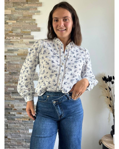 Supprimer du panier Liste de souhaits APERCU Panier Blouse Salvina Tops & Blouses Prix 29,90 € SM ML Apportez une touche de fraîcheur et d’élégance à votre dressing avec cette blouse en gaze de coton blanche , rehaussée de motifs bleu marine...