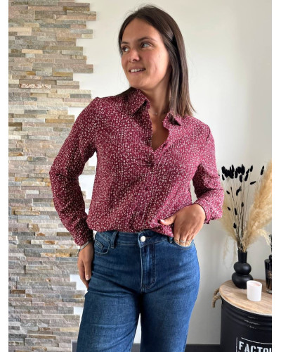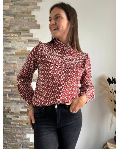 Supprimer du panier Liste de souhaits APERCU Panier Blouse Elodie Tops & Blouses Prix 34,90 € SM ML Drapée dans une teinte bordeaux profonde, cette blouse exhale une élégance subtile, rehaussée de broderies écrues délicatement dessinées. La...
