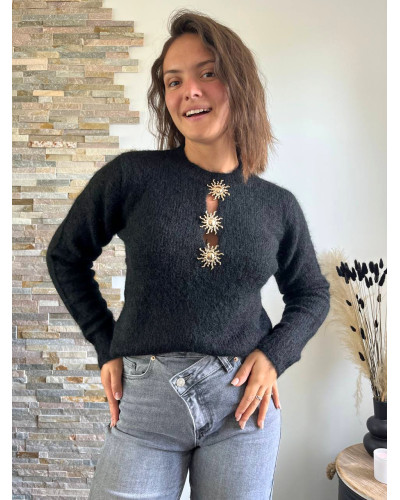 Supprimer du panier Liste de souhaits APERCU Panier Pull Adam Pulls & Gilets Prix 36,90 € Taille Unique Ce pull noir élégant est sublimé par de jolis boutons dorés en forme de soleil , pour une touche lumineuse et sophistiquée. Sa maille douce et...