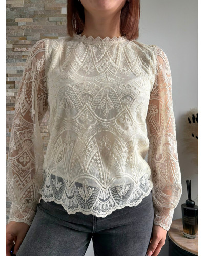 NADINE | Blouse écrue en dentelle