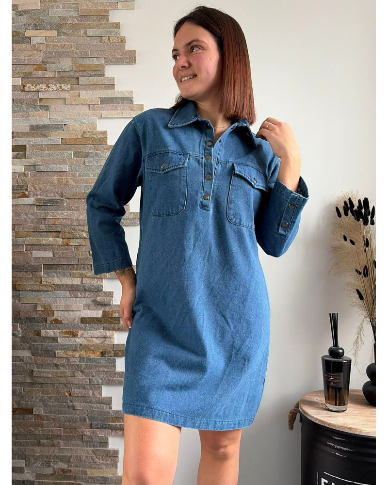Craquez pour la robe Brittany, la pièce indispensable pour un look tendance ce printemps. Son design associe l'intemporalité d'une robe en jean et la modernité avec ses pressions et son col chemise.