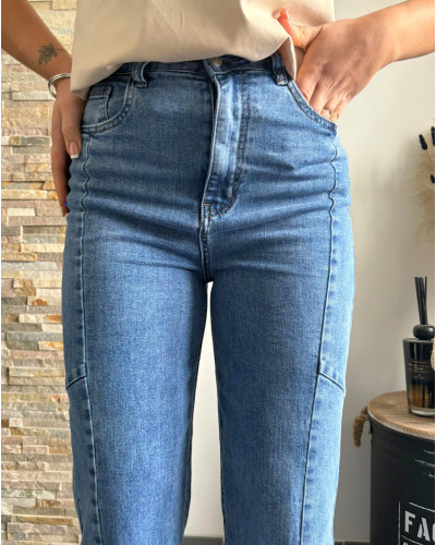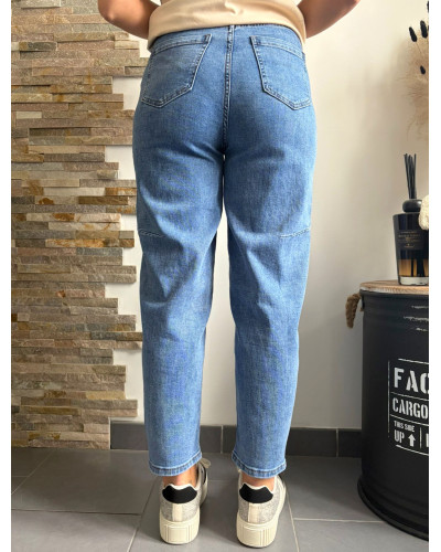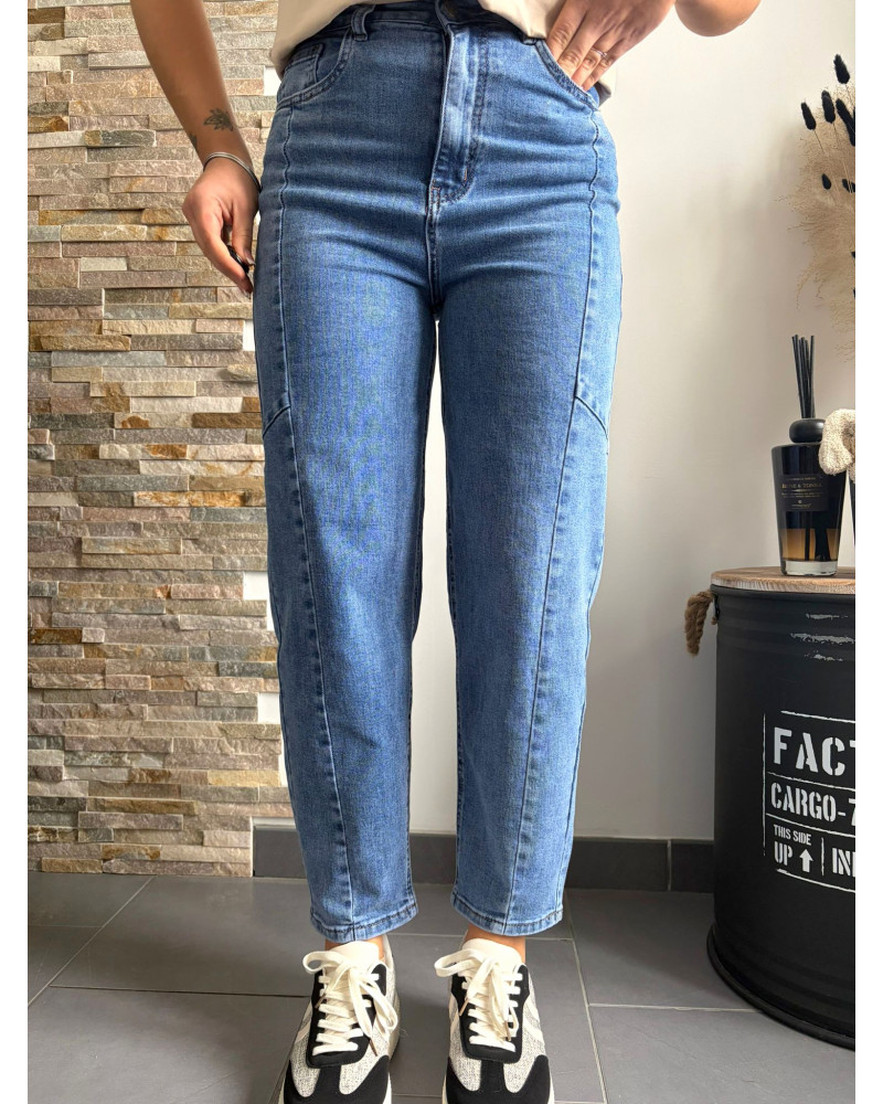 FRANCK | Jean balloon bleu avec élasthanne