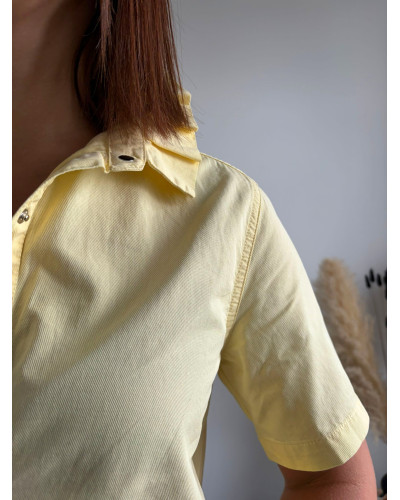 Succombez au charme intemporel de cette robe chemise en jean jaune beurre, une pièce à l'allure douce et raffinée. Son denim, associé à sa coupe droite et son col Victorien moderne, en fait un indispensable facile à porter, parfait pour une silhouette élégante sans effort.