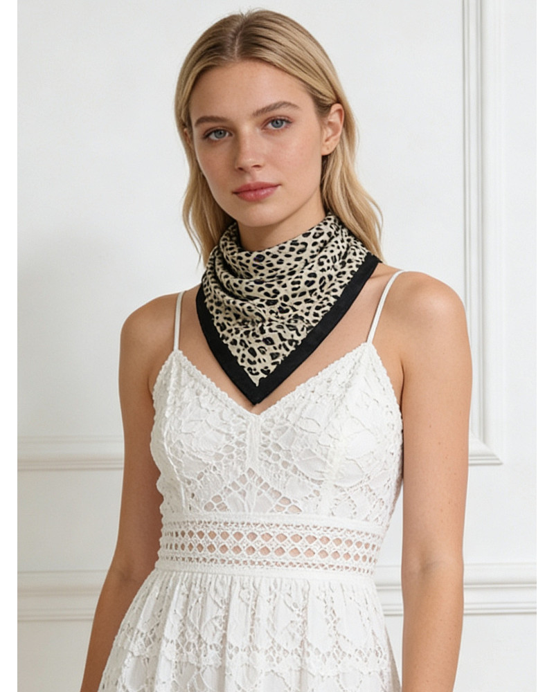 VICTOR | Foulard carré motif léopard beige et noir