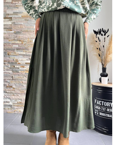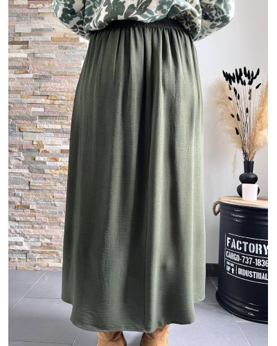 Laissez-vous séduire par la douceur de la matière et l’allure délicate de cette jupe longue fluide kaki, une pièce versatile qui sublime toutes les silhouettes, du matin jusqu’au coucher du soleil.