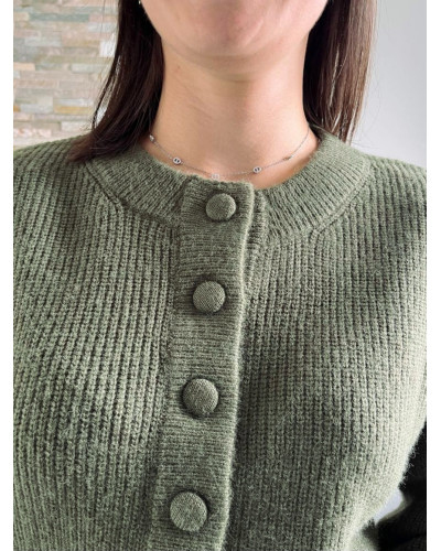 Ce pull kaki, boutonné jusqu’à la moitié du buste, mêle chaleur et élégance dans une coupe droite simple. Les boutons apportent une touche subtile et personnalisée, tandis que le coloris kaki évoque le naturel et la polyvalence. Parfait associé à un jean clair ou un pantalon beige, il s’adapte aussi bien aux journées détendues qu’aux moments un peu plus habillés.