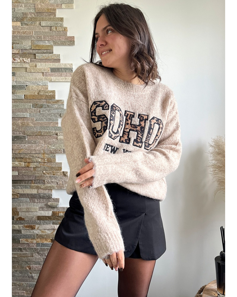 Vous allez adorer le pull Andrew taupe à l'inscription léopard. C'est la pièce idéale pour l’automne et l’hiver, apportant à la fois chaleur et style à vos tenues.