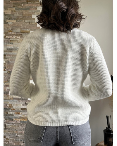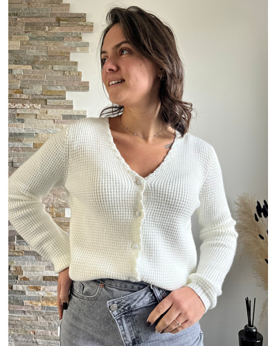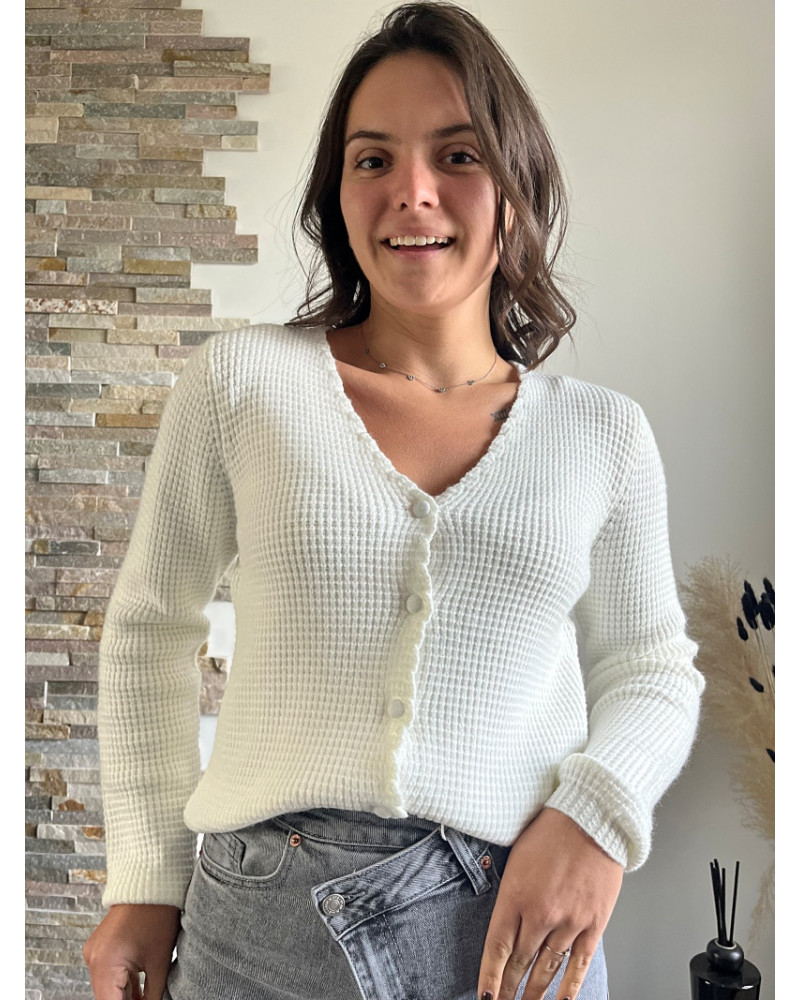 Le Gilet Sylvain blanc est l’allié parfait pour celles qui veulent marier confort et élégance.