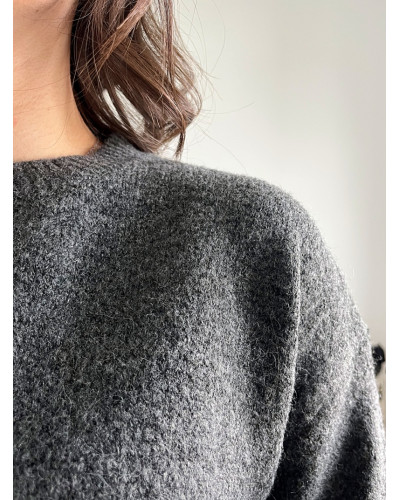 Sa confection dans une maille douce et fluide, permet au pull Bobby d'envelopper délicatement la silhouette tout en apportant une touche de romantisme grâce a sa finitions dentellée au bas. Il tombe parfaitement et accompagne vos mouvements tout au long de la journée. Le coloris gris foncé s’accorde facilement avec des tons neutres, de noirs ou même des touches plus vives, pour des looks variés et modernes.