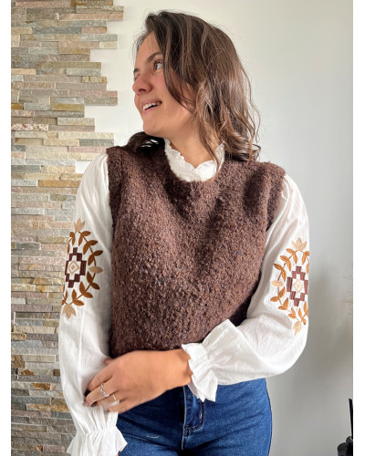 - Pull sans manche marron