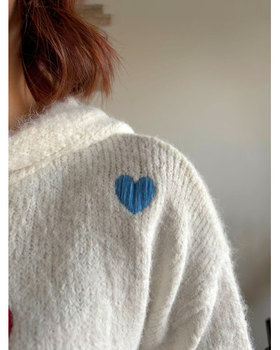 Le pull Bruno est la pièce idéale pour allier confort et fantaisie. Sa maille douce et chaleureuse enveloppe la silhouette tandis que ses cœurs multicolores apportent une touche joyeuse et féminine à vos looks du quotidien.