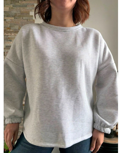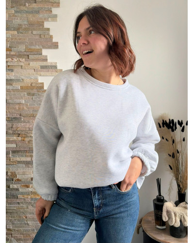 Type : Sweat molletonné gris chiné oversize.