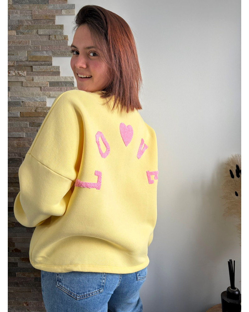 JASMIN | Sweat jaune inscription LOVE dans le dos