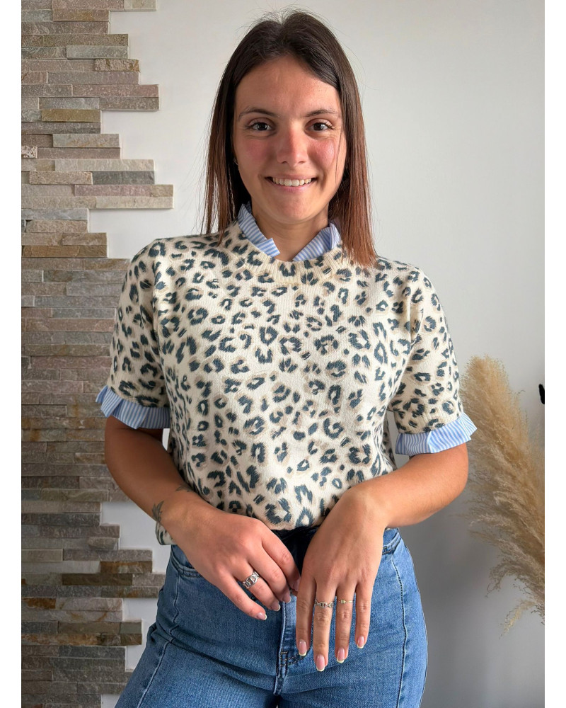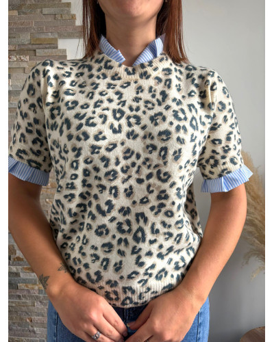 L'incontournable de la garde-robe : le pull mi-saison manche courte Léopard