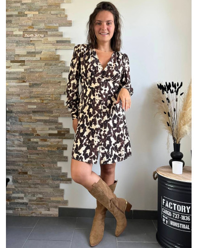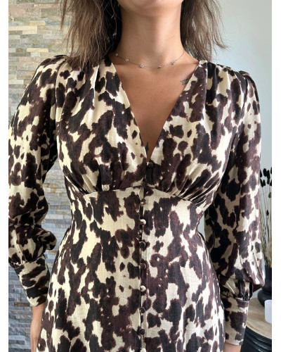 Osez le motif tendance avec cette robe coupe trapèze à imprimé vache, une pièce à la fois originale et facile à porter, qui fera sensation en journée comme en soirée.