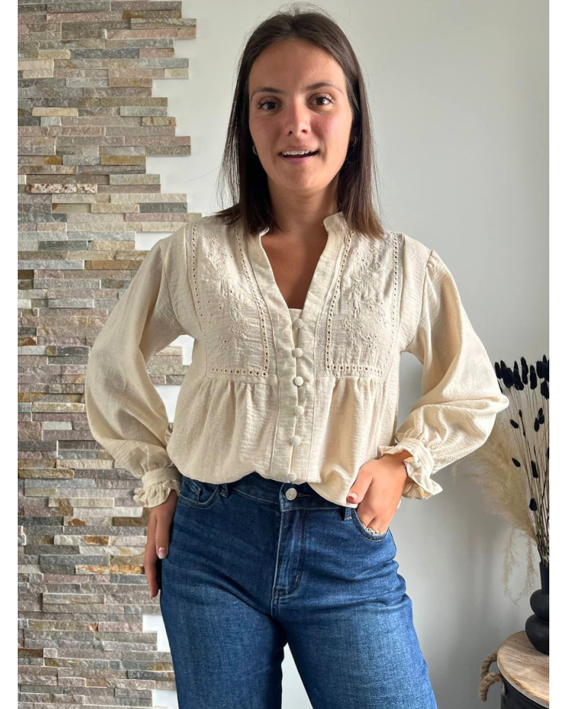 On craque pour notre blouse beige à la broderie romantique. On l'aime pour sa coupe légèrement ample qui saura mettre en valeur toutes les morphologies.