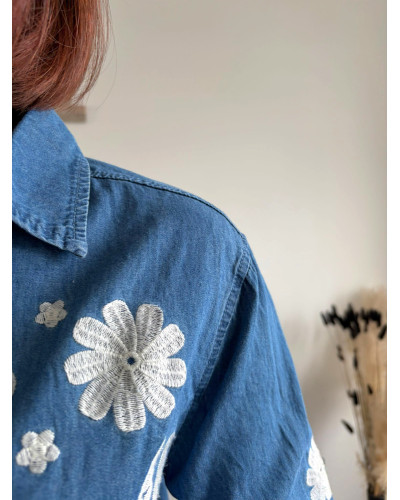 • Type : Chemise jean souple avec broderie blanche et boutons nacrés
