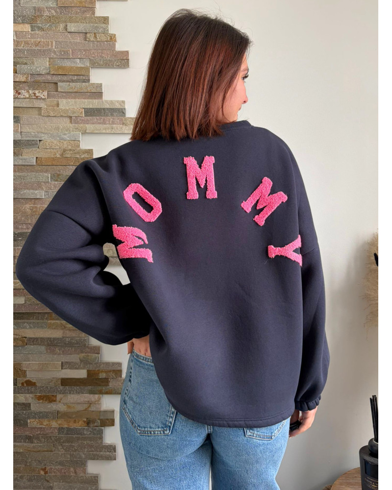MARLEY | Sweat bleu marine inscription MOMMY dans le dos