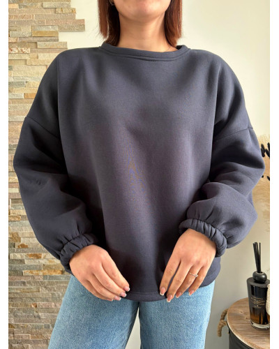 Type : Sweat molletonné gris chiné oversize.