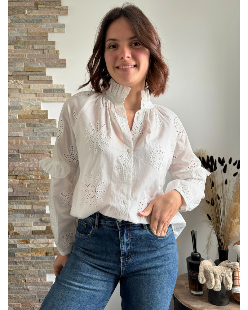 LINA | Blouse blanche avec broderie ajourées