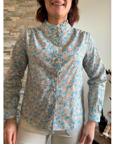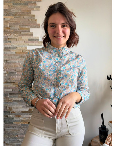 FLORA | Blouse en coton liberty bleu