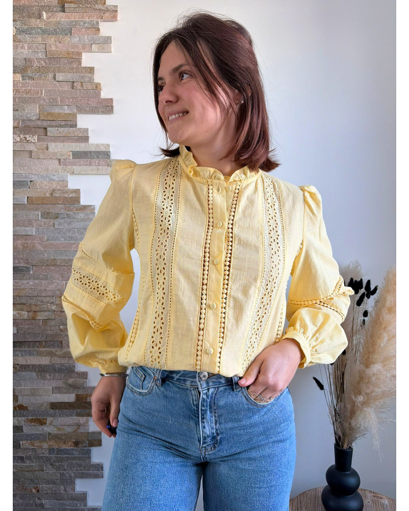 SYLVIANNE | Blouse jaune en coton avec broderie