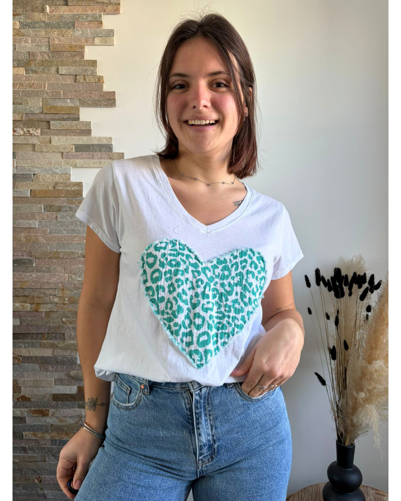 ISAÏA | Tee-shirt en coton blanc cœur léopard