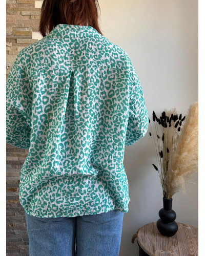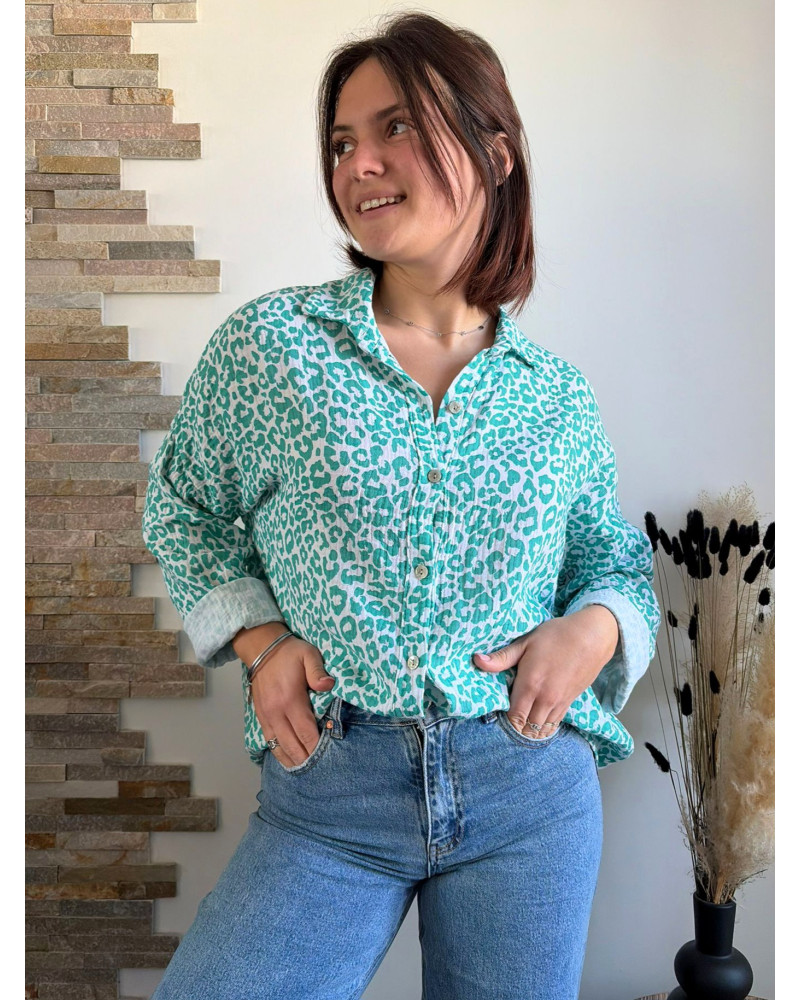 La chemise Bernadette : la douceur de la gaze de coton alliée au moderne léopard