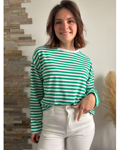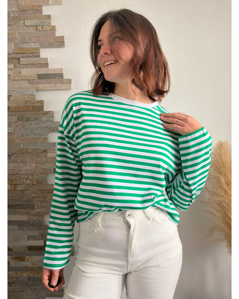 L'indispensable de la garde-robe : le tee shirt à manches longues rayé vert et blanc DAMIEN