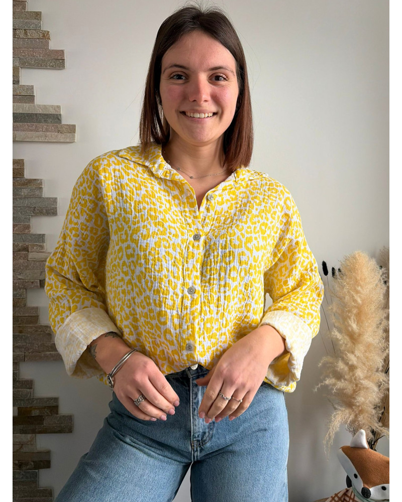 La chemise Bernadette : la douceur de la gaze de coton alliée au moderne motif léopard