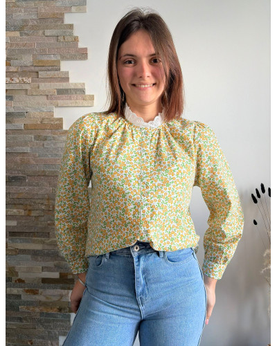La blouse Faustine : la douceur d'un imprimé fleuri jaune et vert