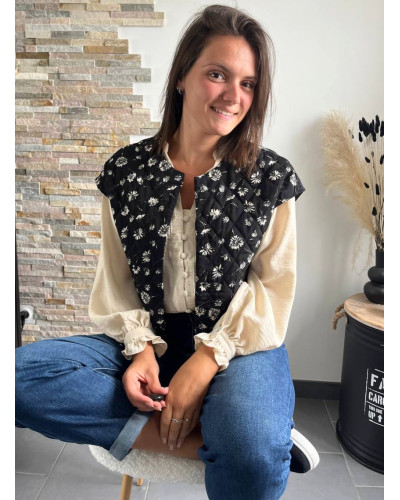 Affichez un style moderne et affirmé avec notre veste matelassée noire sans manches à motif blanc. Conçue pour allier confort et esthétisme, cette pièce incontournable de mi-saison se distingue par son design léger et son effet matelassée.