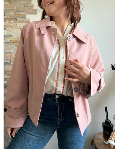 La veste trench Gabby est le parfait équilibre entre élégance et modernité pour vos looks de mi-saison. Confectionnée dans une matière agréable à porter, elle séduit par son coloris rose doux et son intérieur doublé d'un imprimé liberty lumineux, qui apporte une touche subtilement colorée et raffinée à votre vestiaire printanier.